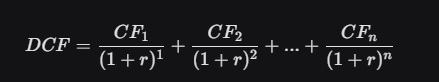 In this equation, CF represents the free cash flow for a given year, and r stands for the WACC discount rate. Accurately executing this model requires applying a calculated cost of debt at 8.59%, a beta of 0.24, and a strict equity risk premium of 8.78%.